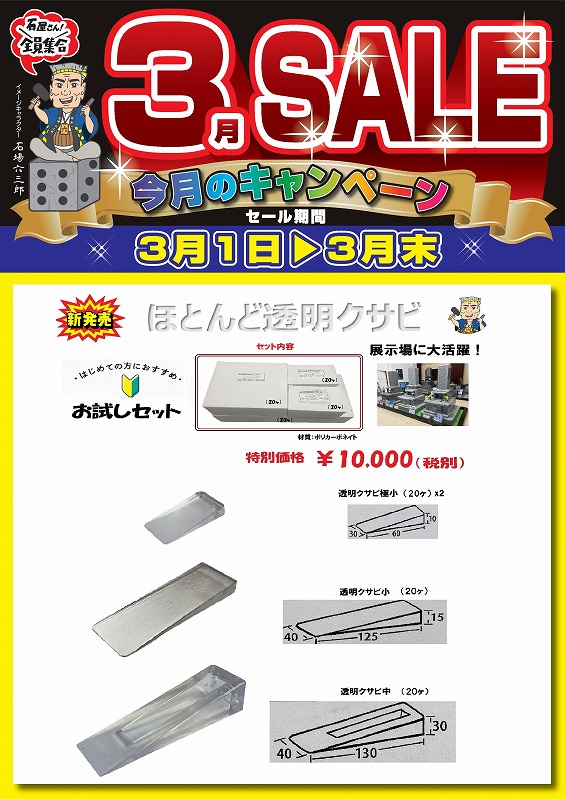 - 2026/03/02 3月SALE【今月のキャンペーン】新製品:ほとんど透明クサビ
