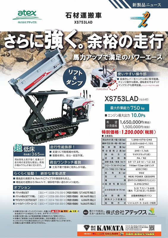 - 2026/04/02 新製品:㈱アテックス 石材運搬車 XS753LAD 力石 5月発売予定