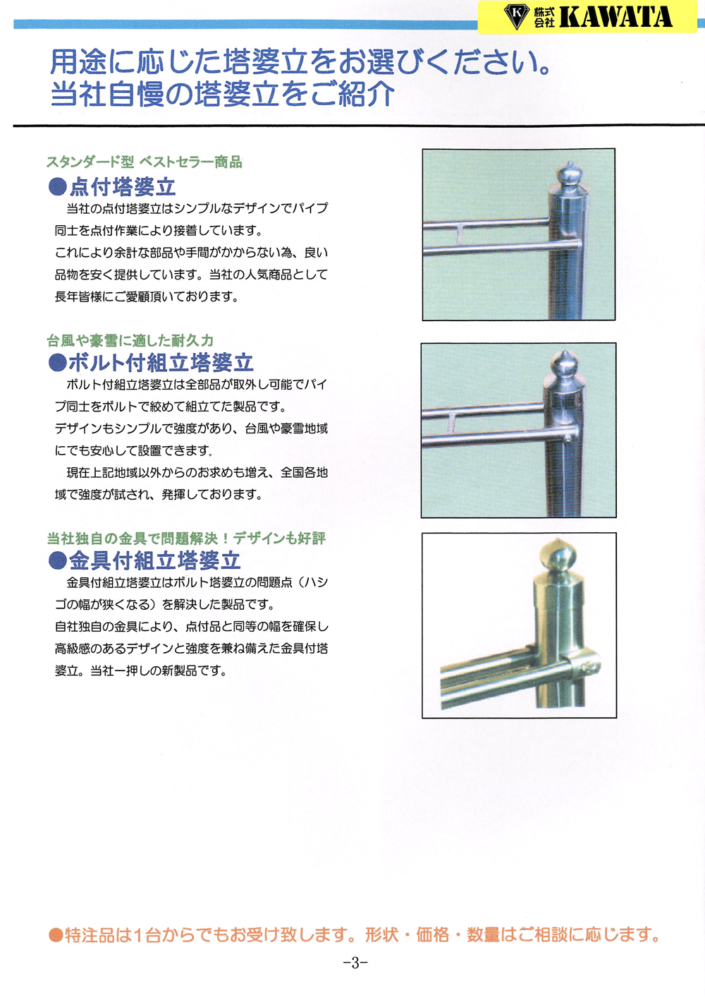 点付塔婆立・ボルト付組立塔婆立・金具付組立塔婆立…P3