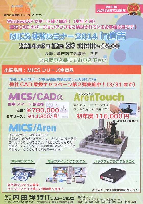 - 2014/03/01 鳥取県倉吉市:3月12日(水)内田ITソリューションズ【墓石キャド】