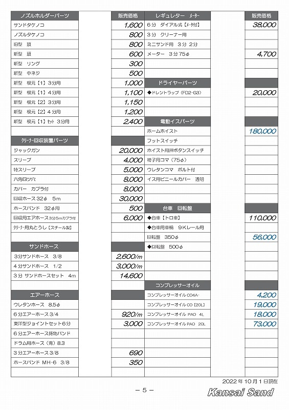 関西サンド価格表 202210